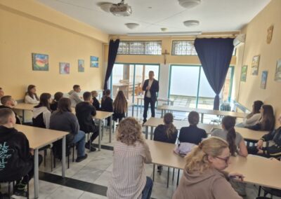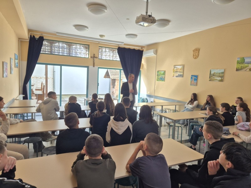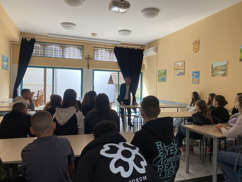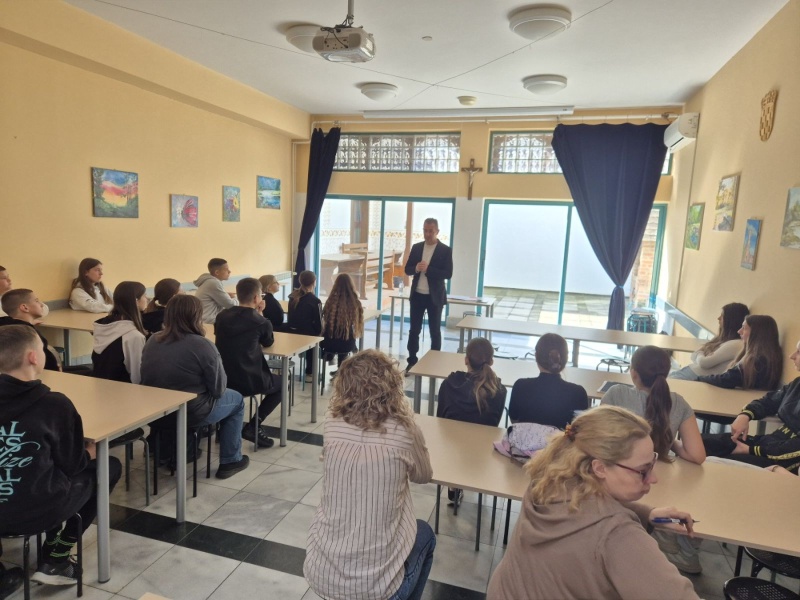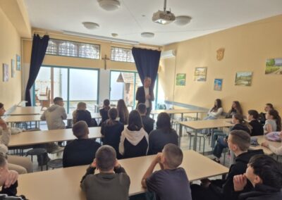 U ponedjeljak, 27.4., u našoj školi ugostili smo g. Marijana Gubinu, autora knjige “260 dana” i pokretača međunarodnog projekta “Mirotvorac”. G. Gubina učenicima 7. i 8. r. te djelatnicima škole predstavio je dio zarobljeničkih iskustava koje je kao desetogodišnjak doživio tijekom Domovinskog rata. Unatoč izrazito teškim skustvima opisanima u navedenoj knjizi, a koja su također pretočena u kazališnu predstavu te igrani film, predavač je ostavio dubok trag optimizma naglašavajući prisutnima važnost promišljanja, unutarnje snage, empatije, ljubavi, dijaloga i tolerancije.